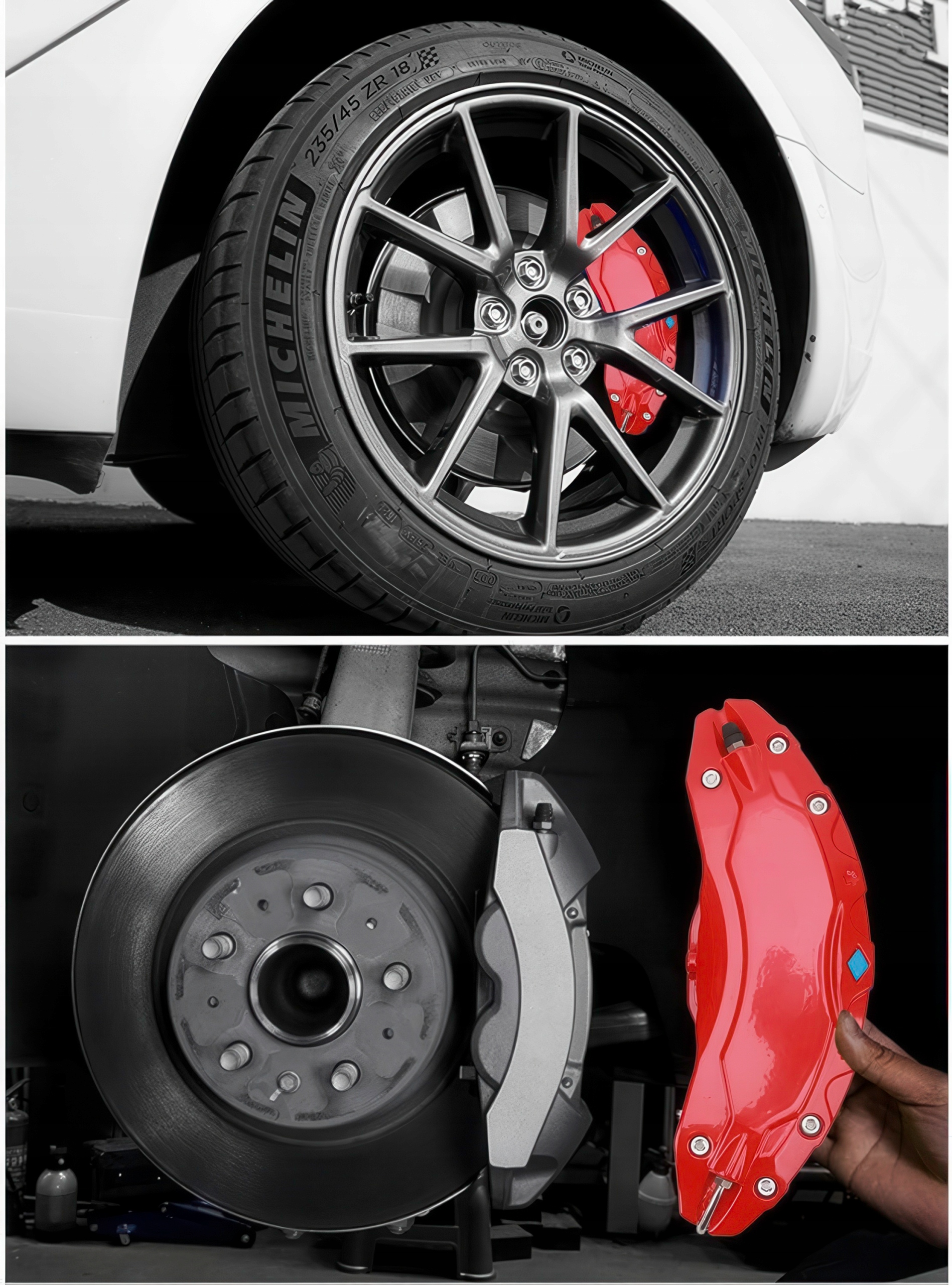 【Улучшение функциональности】: крышки тормозных суппортов играют многофункциональную роль. Они рассеивают тепло, выделяемое тормозной системой, что увеличивает срок службы и эффективность тормозов. Кроме того, они прекрасно дополняют оригинальный дизайн автомобиля, придавая ему более спортивный вид, не ухудшая при этом функциональность тормозной системы.