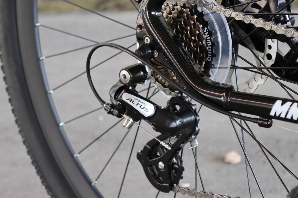 Надежное оборудование от мирового лидера в производстве компонентов для велосипедов Shimano: задний переключатель Shimano ALTUS, обгонная муфта Shimano передний переключатель Shimano Tourney.