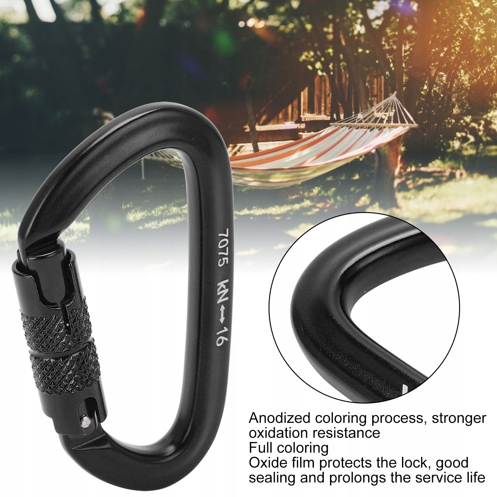 Алюминиевый карабин с автоматической блокировкой и поворотным замком для пеших прогулок (черный карабин с автоматической блокировкой № 9)