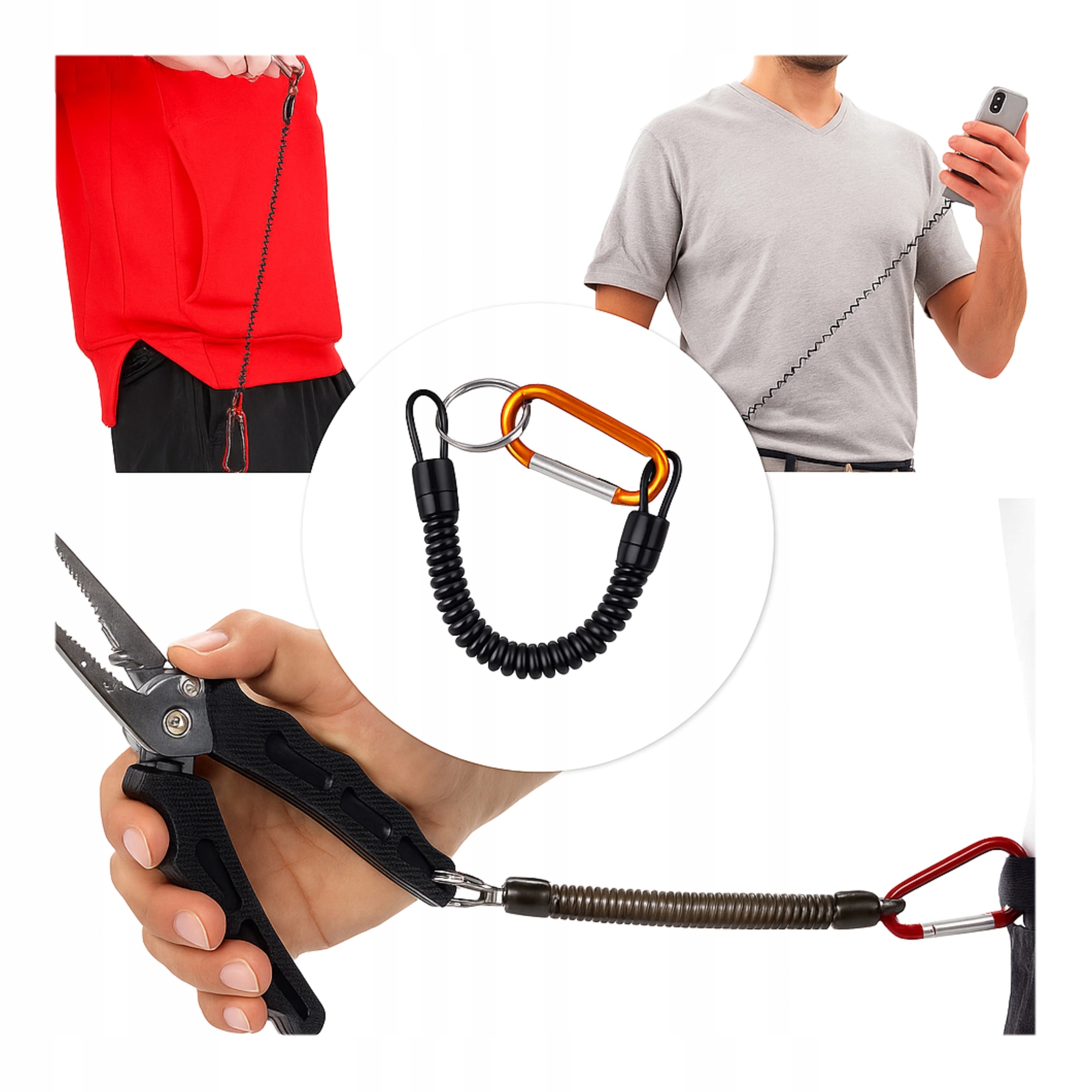 - ✅ Очень практичный алюминиевый карабин на пружинном канате — идеально подходит для крепления ключей, инструментов, туристического снаряжения и предметов повседневного спроса.