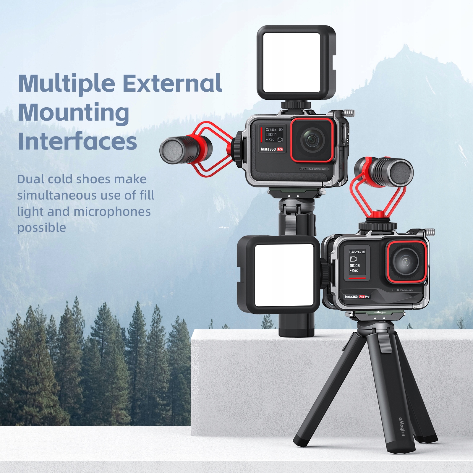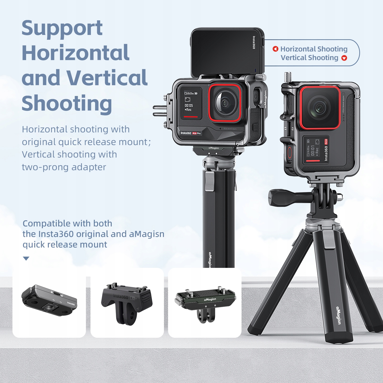 быстрое выпуск закрепления также совместим с монтажными точками на клетке кадра, поскольку он принимает не магнитную структуру направления колонны. Вам не нужно переустановить ручку быстрого выпуска; Достаточно повернуть камеру на 180 °, чтобы свободно переключаться между выстрелами спереди и селфи.