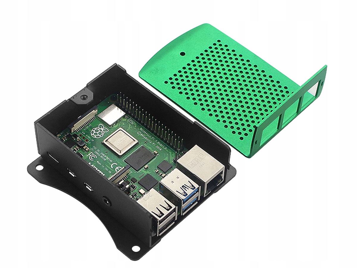 Алюминиевый корпус для Raspberry Pi 4B, зелёный и чёрный