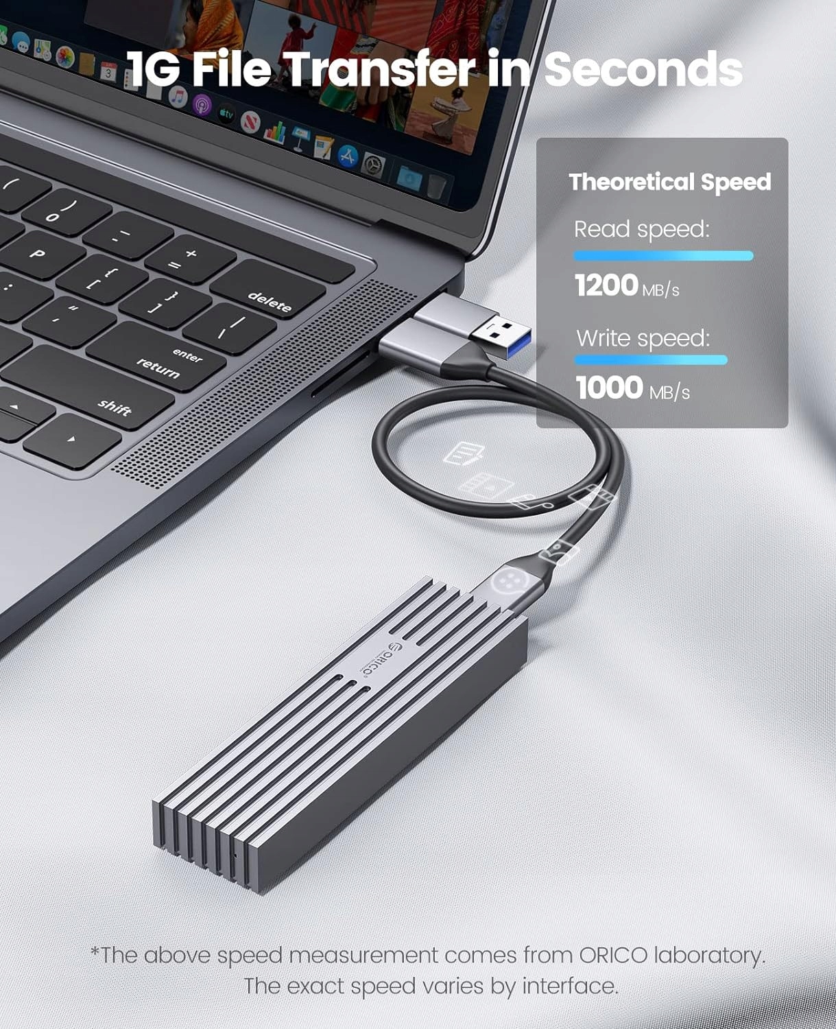 ORICO M.2 NVMe to USB имеет встроенные интеллектуальные микрочипы и несколько систем защиты. Он также поддерживает протокол ускорения UASP, функции TRIM и SAMRT, что делает чтение быстрее и безопаснее.