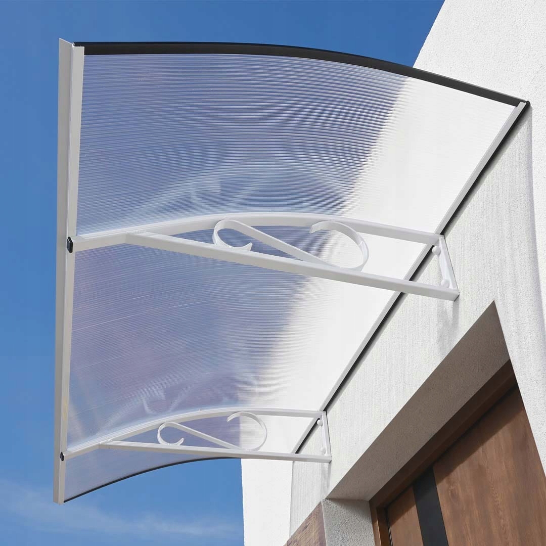Навес предназначен для самостоятельной сборки – этот легкий дверной навес устанавливается надежно и легко с помощью всего лишь нескольких элементов.