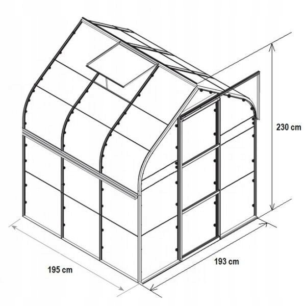 теплица, полностью изготовленная из алюминия и 3 мм, измельченного стекла. как в боковой стене, так и на крыше, один пролет - одна тега. Модель Orion имеет одно встроенное окно крыши и одиночные раздвижные двери.