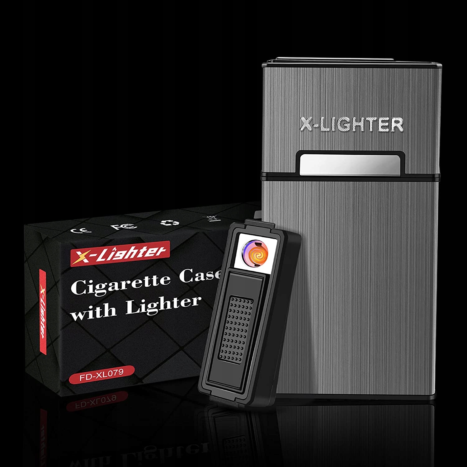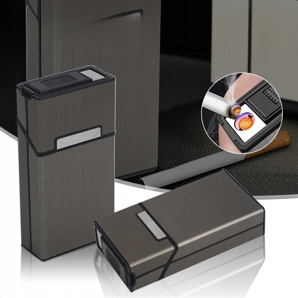 Портсигар алюминиевый 2 в 1 с электронной зажигалкой, ветрозащитный.