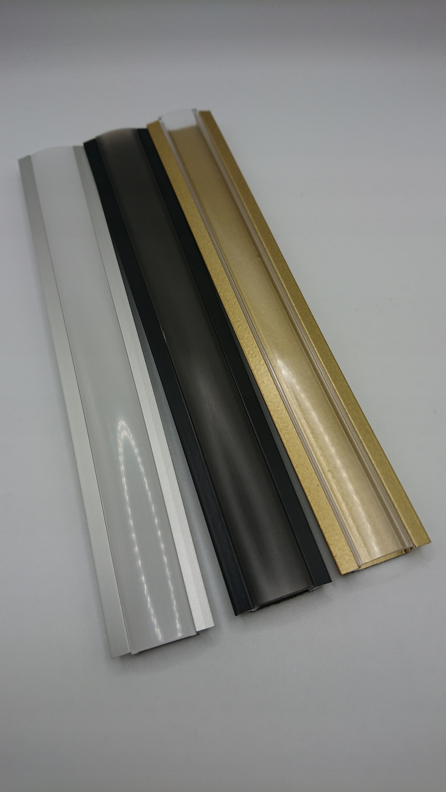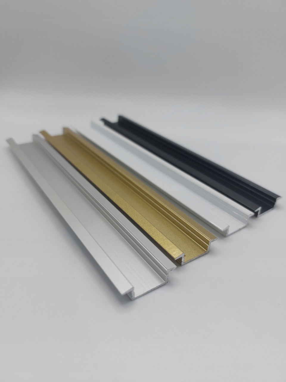 Алюминиевый профиль для встраиваемого светодиодного освещения длиной 2 м. Продается комплектом с опаловым, прозрачным или черным абажуром и колпаками в цвет профиля.