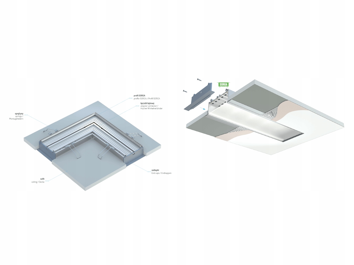 - Профиль алюминия Sorga легко установить и может быть установлен на поверхности специальным клеем или винтами li>