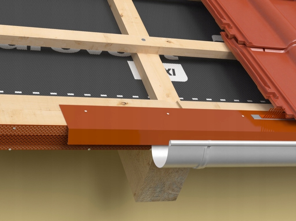 Жёлобная лента Eurovent® EAVE STRIP используется для отделки и защиты карнизной зоны. Изготовлен из алюминиевого листа, покрытого полиэфирной краской и дополнительно закрепленного защитной полиэтиленовой пленкой, которая снимается при сборке. Доступен в нескольких цветах.