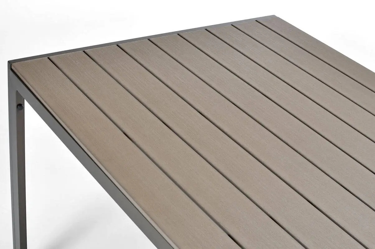 Прямоугольный садовый стол из алюминия со столешницей, имитирующей дерево