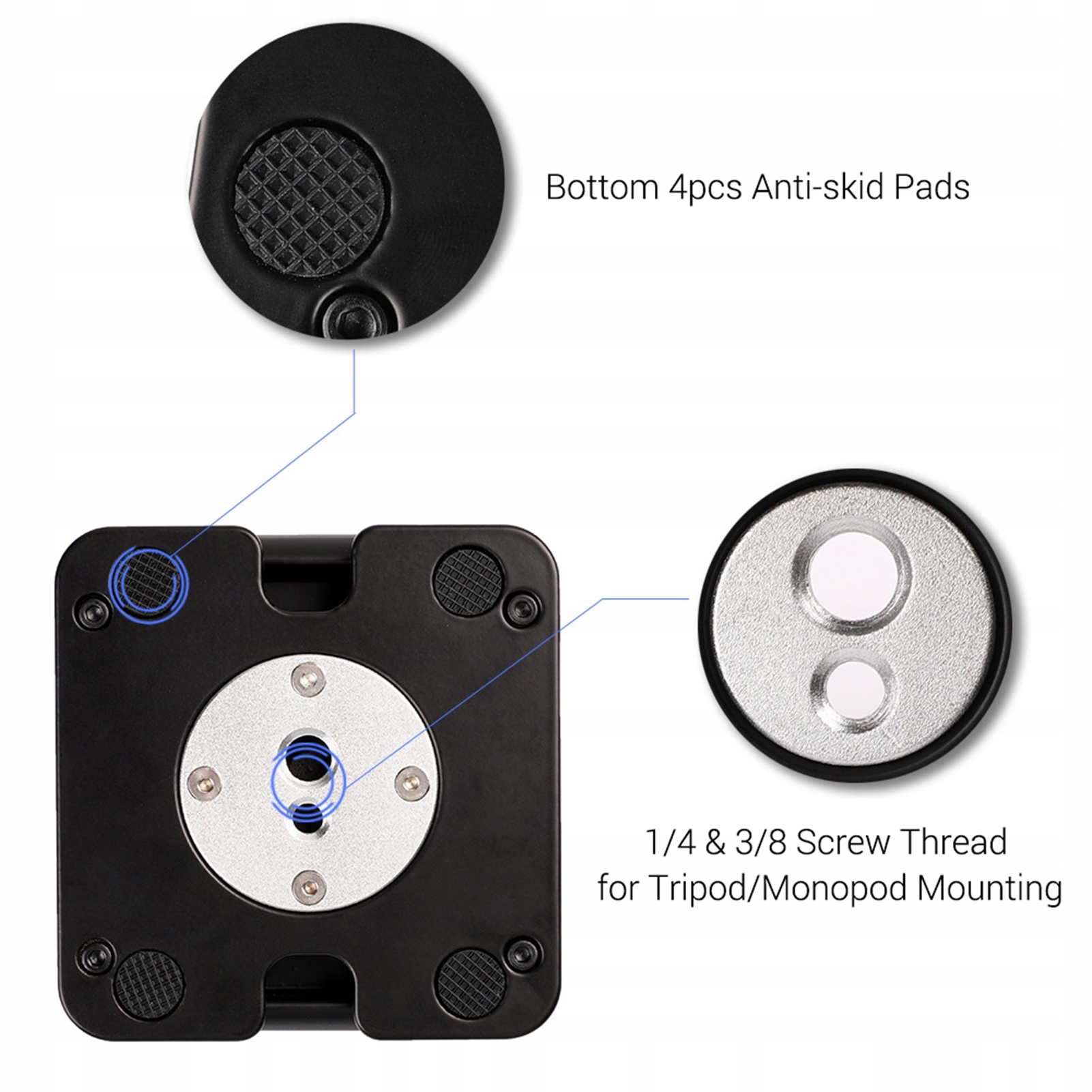 - Благодаря универсальным резьбовым отверстиям 1/4 и 3/8 внизу его можно удобно закрепить на штативе.
