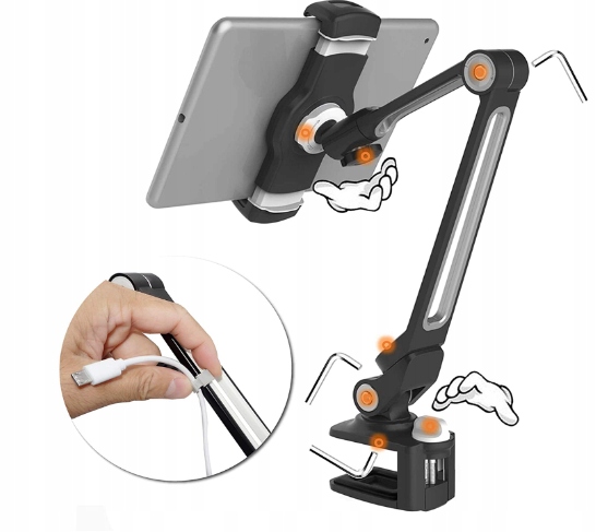 Прочная и полностью регулируемая подставка для планшета с двухступенчатым металлическим кронштейном обеспечивает современное рабочее место и максимальный комфорт