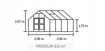 Премиальная садовая теплица (8,8 м2; 2,96 х 2,96 м) - Антрацит + База h1>