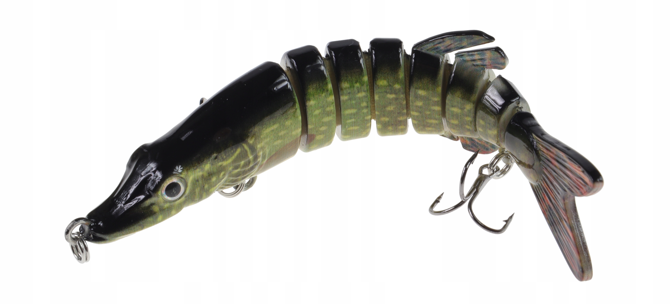 - Реалистичность движения - благодаря сегментированной конструкции с 8 секциями воблер движется в воде как настоящая рыба, что эффективно провоцирует хищников на нападение.
