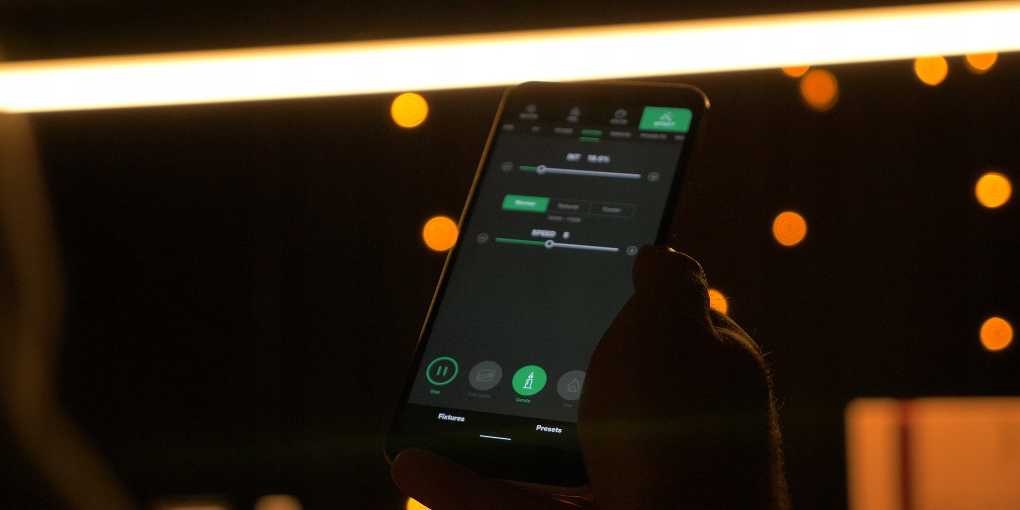 Инновации, предлагаемые светодиодным светильником Amaran T2c, включают в себя набор уникальных спецэффектов. Эффектные комбинации вспышек и меняющихся цветов позволят вам использовать такие симуляции, как: музыкальный клуб, папарацци, гроза, телевизор, свеча, костер, стробоскоп, взрыв, поврежденная лампочка, пульсация, сварка, полицейская машина, проникновение света, вечеринка и фейерверк. Каждый из эффектов вы можете настроить под свои нужды, изменяя отдельные параметры со встроенного экрана или приложения Sidus Link.