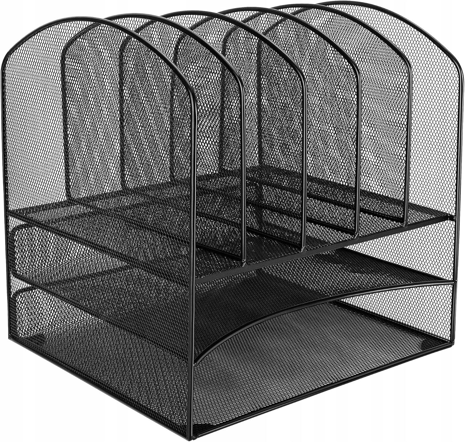 Настольный органайзер с 5 вертикальными отделениями для хранения файлов и 2 лотками для документов внизу.