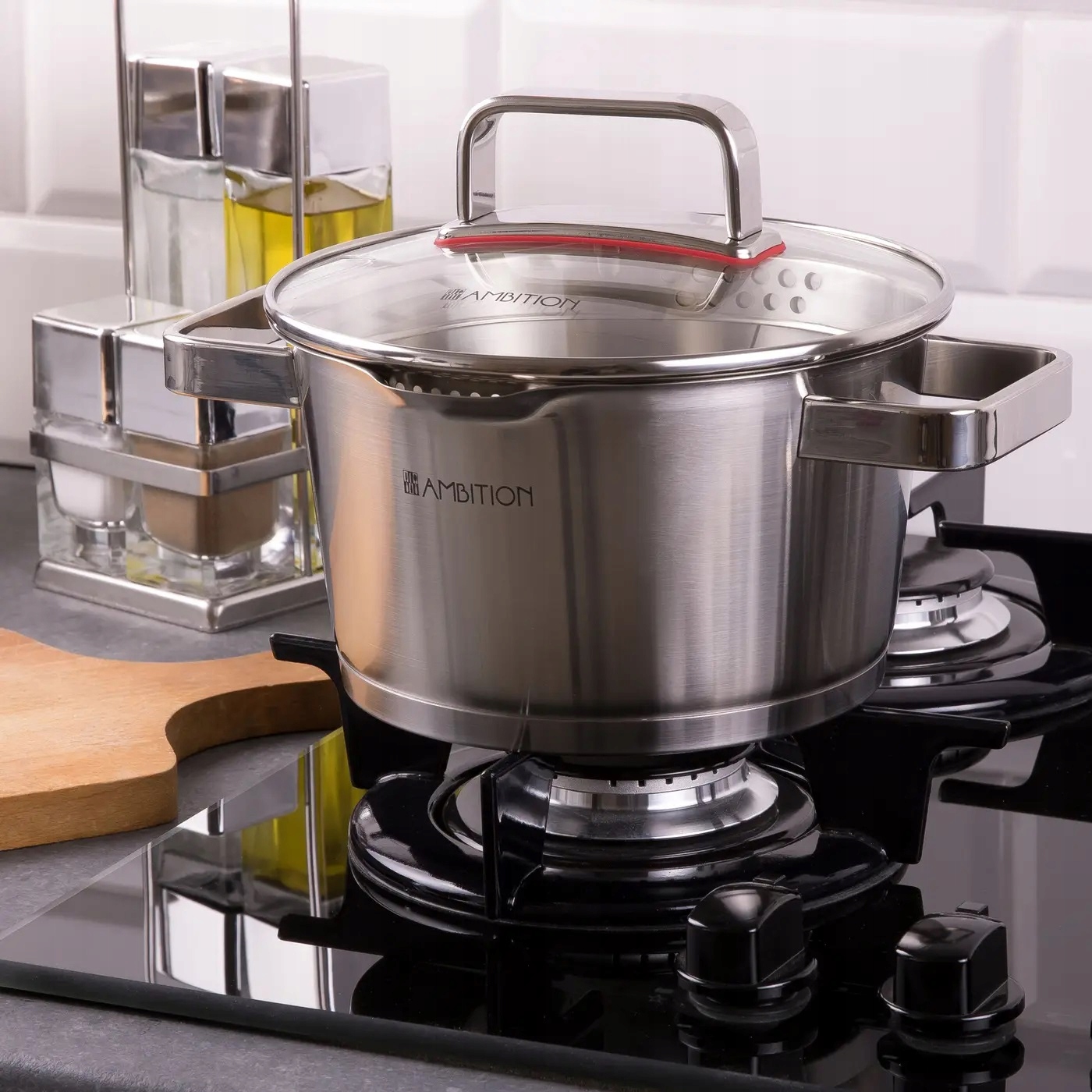 Набор горшков - это идеальное сочетание качества и функциональных возможностей, которое удовлетворит даже самых требовательных любителей приготовления пищи. Горшки из нержавеющей стали не только обеспечивают долговечность и сопротивление различным внешним факторам, но и безопасность приготовленных блюд. Инновационная конструкция с трехслойным дном гарантирует даже распределение тепла, что приводит к идеально приготовленным блюдам, богатым вкусом и ароматом. Пользовательские функции, такие как маркировка вместимости на внутренних стенах и универсальность использования на различных видах плитов, включая индукционные, делают эти горшки необходимыми оборудованием для каждой кухни. Кроме того, возможность использования их в духовке до 180ºC открывает новые возможности для кулинарных экспериментов. Закаленные стеклянные крышки с силиконовыми прокладками - еще один элемент, который повышает комфорт и безопасность использования.