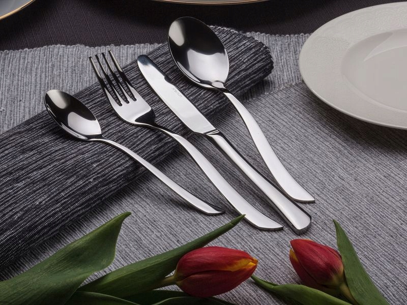 Оригинальная, нерегулярная форма столовых приборов, безусловно, отличит ваш стол от других. Простая, но оригинальная форма ручки добавляет элегантность и современный характер.