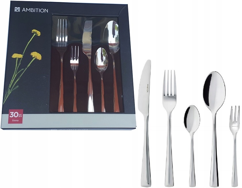 AMBITION 60 СТОЛОВІ ПРИЛАДИ НЕРЖАВІЮЧІ СІНА ПРЯМИЙ НАБІР 48 + ВИДЕЛКИ 12 ОСІБ
