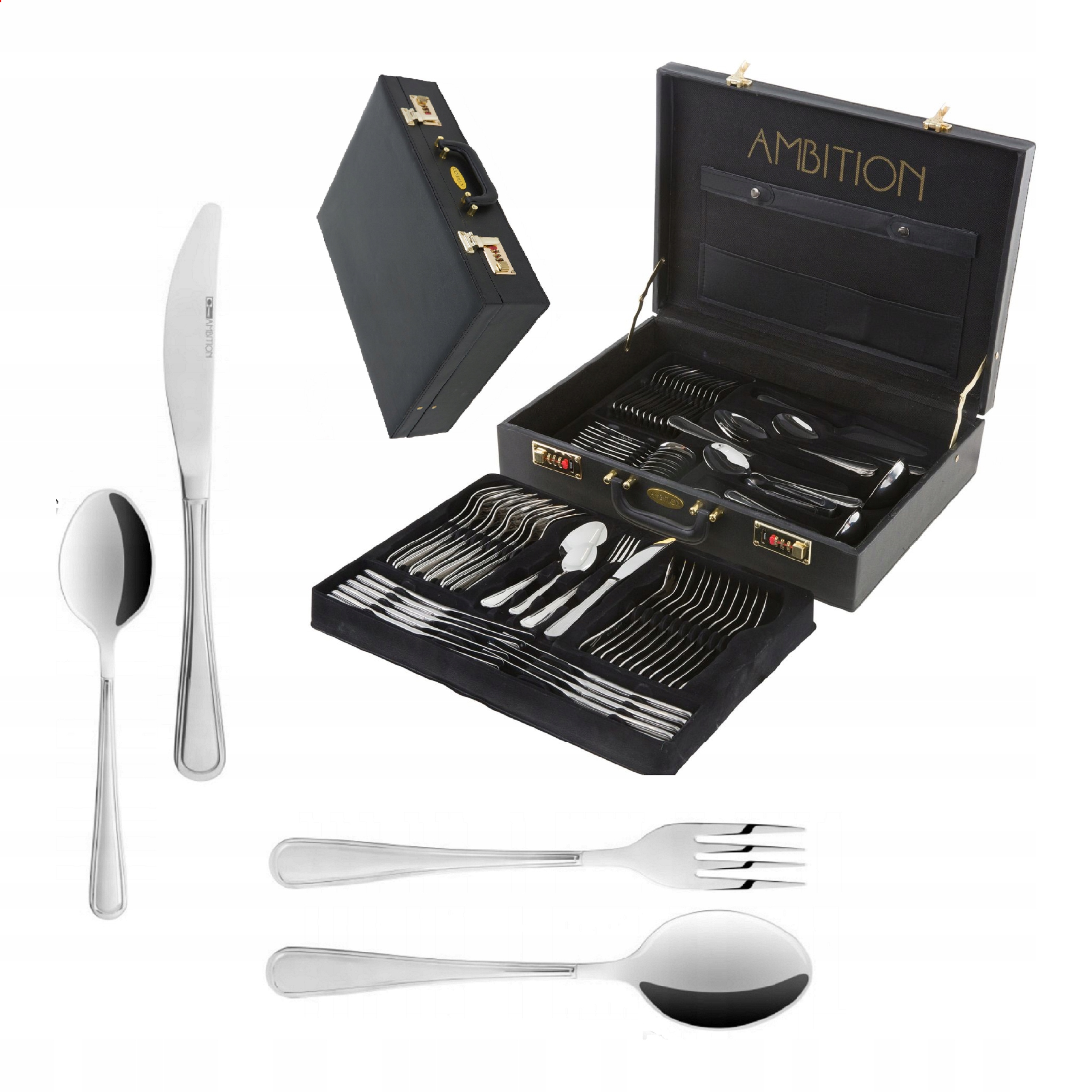 AMBITION 72 VERONA СТОЛОВЫЕ ПРИБОРЫ, НЕРЖАВЕЮЩИЙ ЧЕХОЛ, КЛАССИЧЕСКИЙ НАБОР, НА 12 ЧЕЛОВЕК