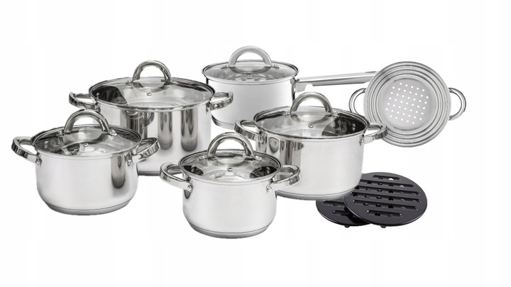 - В комплект кастрюль входят соответствующие крышки с пароотводами.