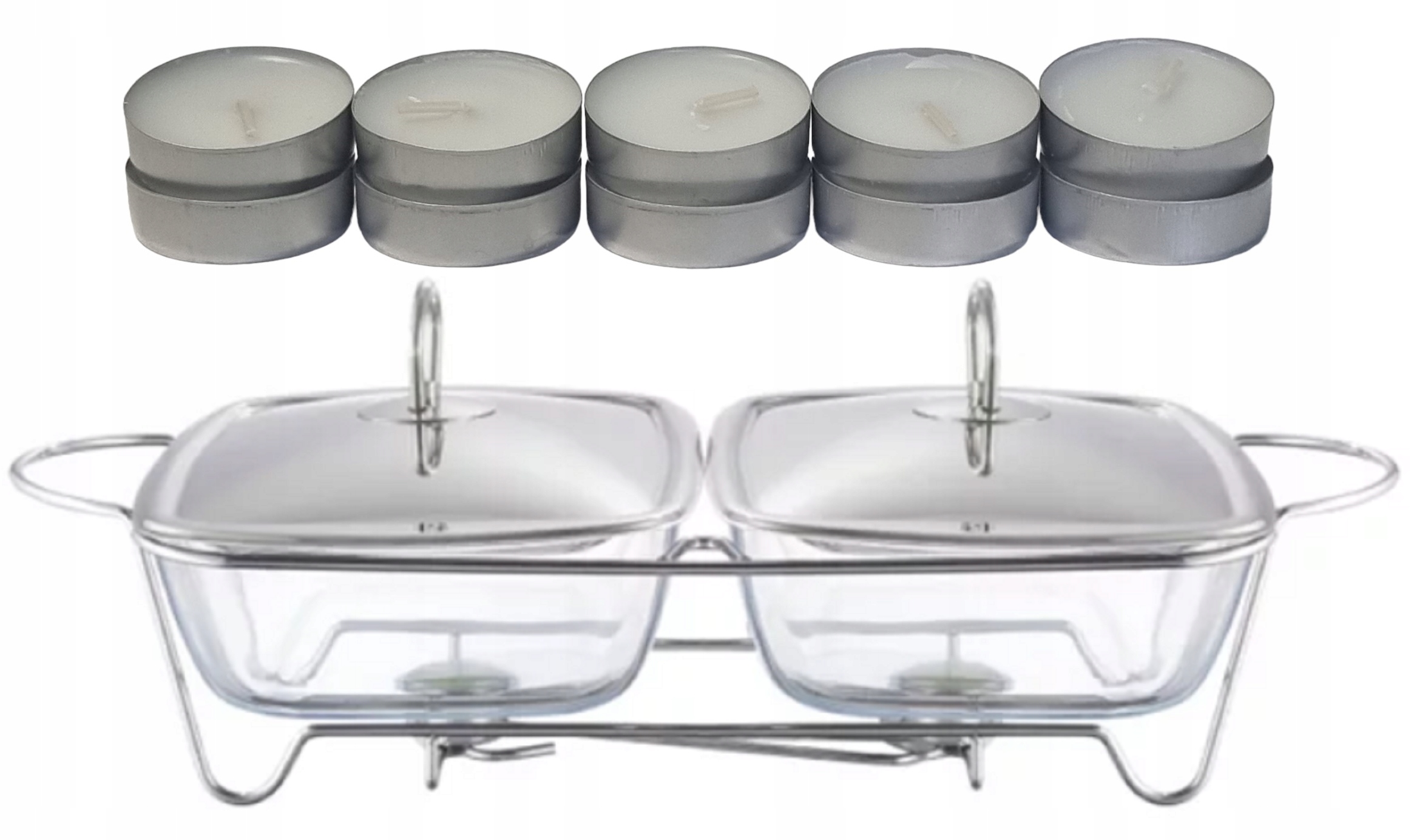 Блюдо изготовлено из термостойкого стекла высочайшего качества. Его покрытие идеально гладкое, непористое, легко моется и на 100% гигиенично. Сосуд отличается высокой термостойкостью: от -40°С до +300°С. Он пригоден для хранения продуктов при низких температурах, а после снятия с рамки его можно использовать в духовке. Идеально подходит для различных торжеств. В комплект к блюду входит подставка из толстой хромированной проволоки с двумя подсвечниками, которые позволяют поддерживать нужную температуру блюда на протяжении всего праздника. Рама имеет практичные ручки, которые облегчают переноску, а ее конструкция гарантирует безопасное размещение горячего блюда на столе. Накройте посуду крышкой из нержавеющей стали с металлической проушиной.
