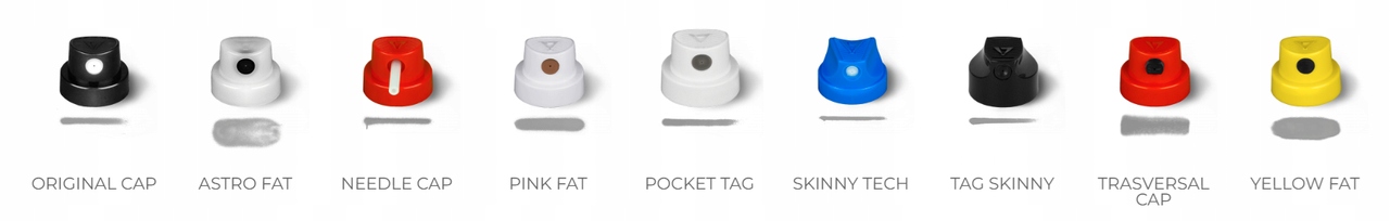 Насадки для TAG GRAFFITI SPRAY: Производитель рекомендует устанавливать насадки большей производительности, напр. TRASVELSAL CAP (красный), YELLOW FAT (желтый), ASTRO FAT (белый), затем распыление для быстрого разблокирования клапана во избежание ситуации, при которой сначала вылетает смола, а затем краска. Вышеуказанные насадки доступны на наших аукционах