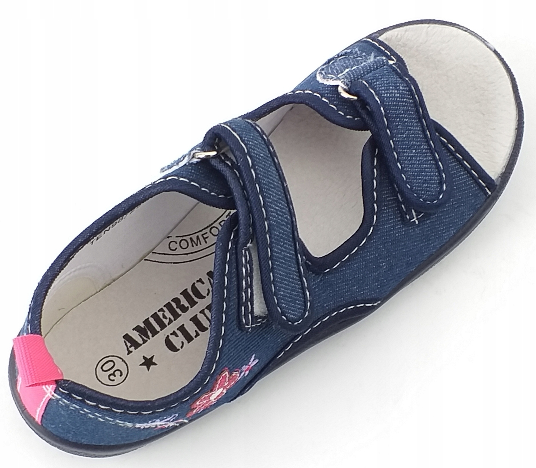 Сандалии - Детские тапочки от American Club, известной и уважаемой компании на польском рынке. Обувь была тщательно изготовлена из материалов высочайшего качества, уделяя внимание каждой детали. Верх босоножек-тапочек выполнен из ткани, стелька из натуральной кожи.Гибкая, нескользящая подошва. Сандалии застегиваются на липучки, поэтому их можно отрегулировать по ширине стопы. Дополнительным преимуществом обуви является ее интересный фасон и расцветка, которая наверняка придется по вкусу девушкам.