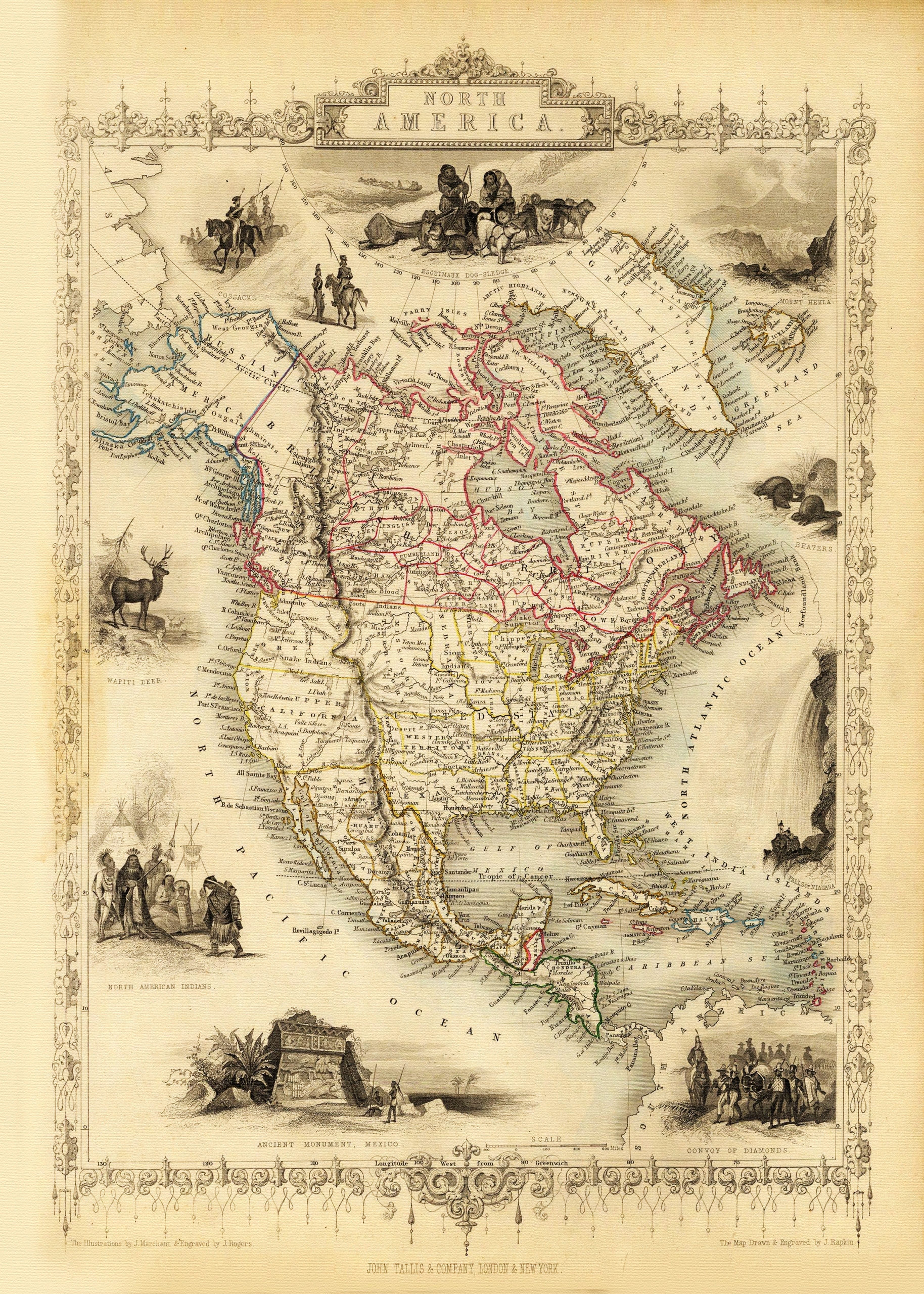 АМЕРИКА США КАНАДА МЕКСИКА иллюстрированная карта на холсте