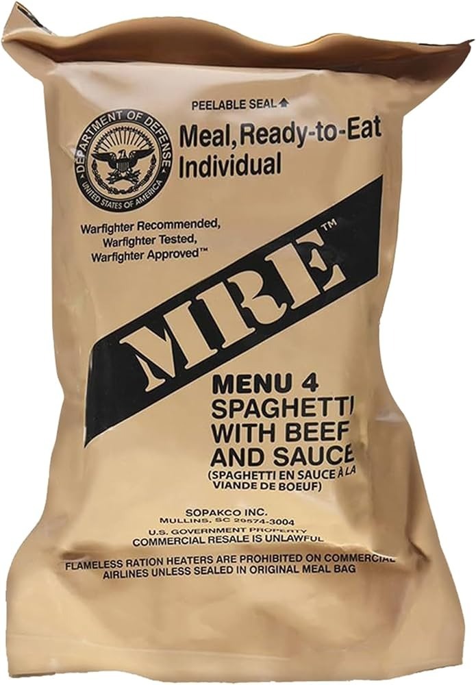 Тип пищевых пайков (MRE-Meal готова к употреблению) готовится с использованием химического обогревателя, который находится в наборе (не требует освещения и просто добавляет воду).