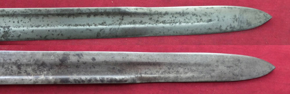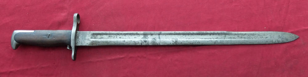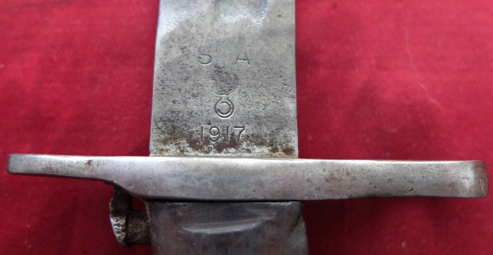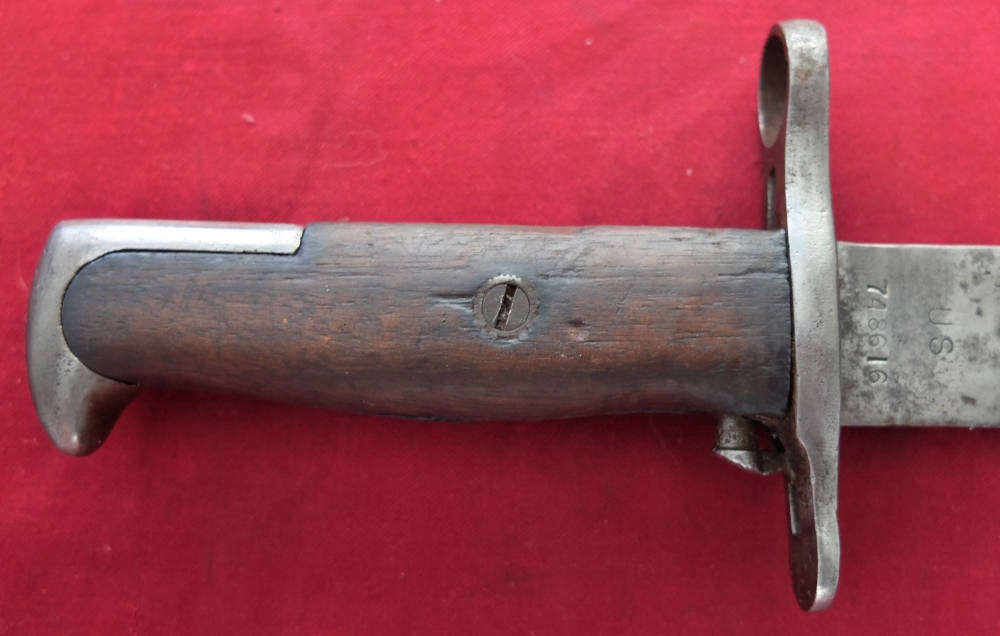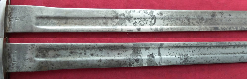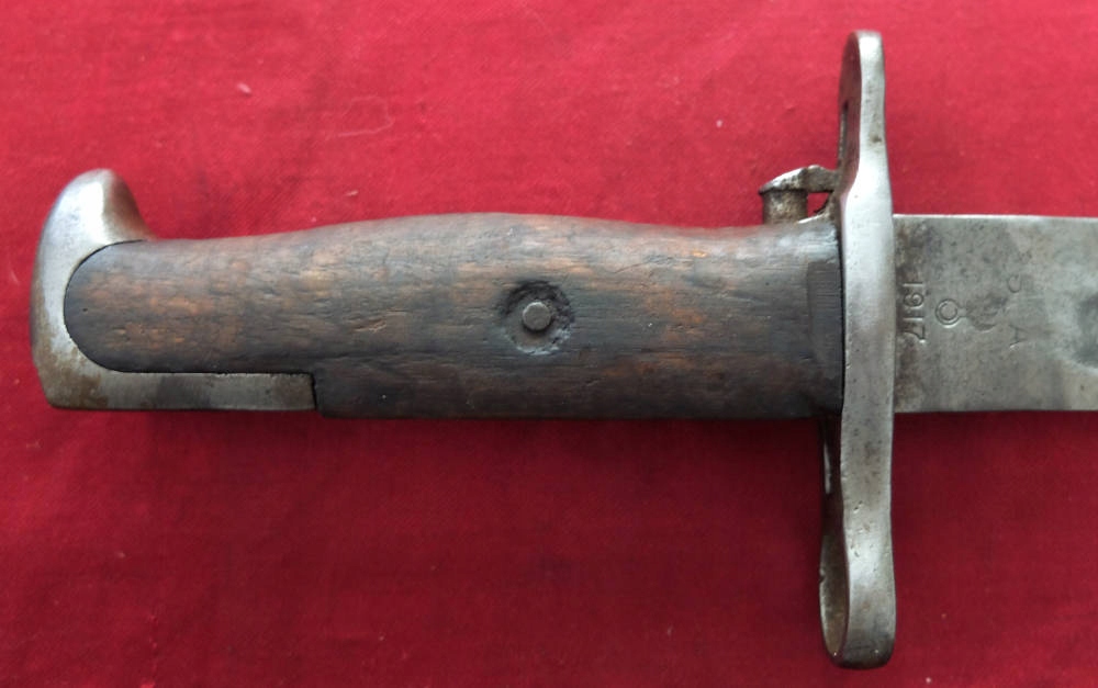 Копия видна на фотографиях, хорошо сохранилась. Лезвие было заточено в ту эпоху. На пороге клинка сохранились многочисленные подписи. ВидимыйС.А. (Спрингфилдская оружейная палата), ниже военной приемки США — взрывающаяся граната и год производства 1917. На другой стороне находится маркировка США и серийный номер 748616. Накладки на ручки изготовлены из натурального дерева. Байонетный замок функциональный.