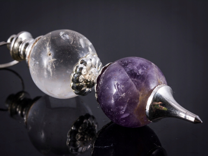 Ametyst + kryształ górski Wahadełko wahadło podwójna kula