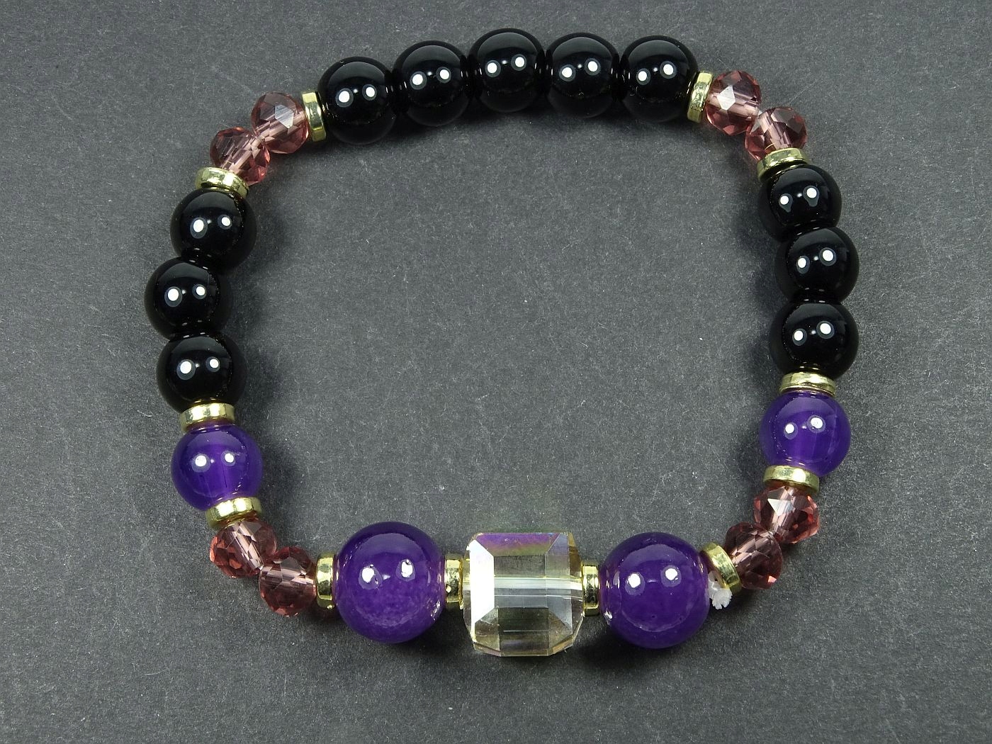 браслет с аметистом, цитрином, кварцем, ониксом, подарок 62b