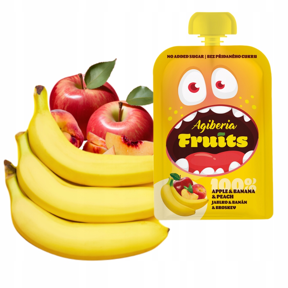 Фруктовый мусс AGIBERIA Fruits яблоко-банан-персик 12х100г