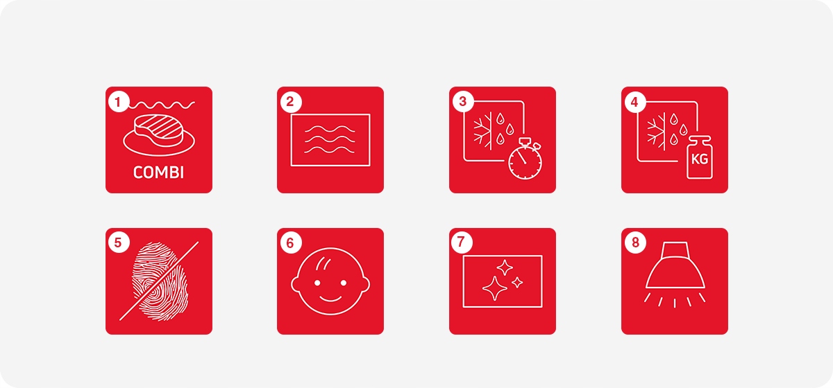 - Внутреннее освещение Температуры для функции комбинированного гриля: 50 ° C-230 ° C
