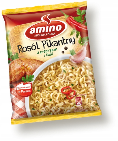 Попробуйте Пряный бульон с перцем и чили от Amino и восхититесь его неповторимым вкусом. Необычный, насыщенный суп, который прекрасно насыщает и согревает. Сочетание перца и чили, подчеркнутое добавлением имбиря, паприки и чеснока, понравится любителям острых блюд. Здесь нет места скуке! В состав супа добавлена улучшенная формула пельменей, придающая ему более домашний вкус и более густую консистенцию. Почувствуйте вкус пикантного бульона от Amino уже сегодня!