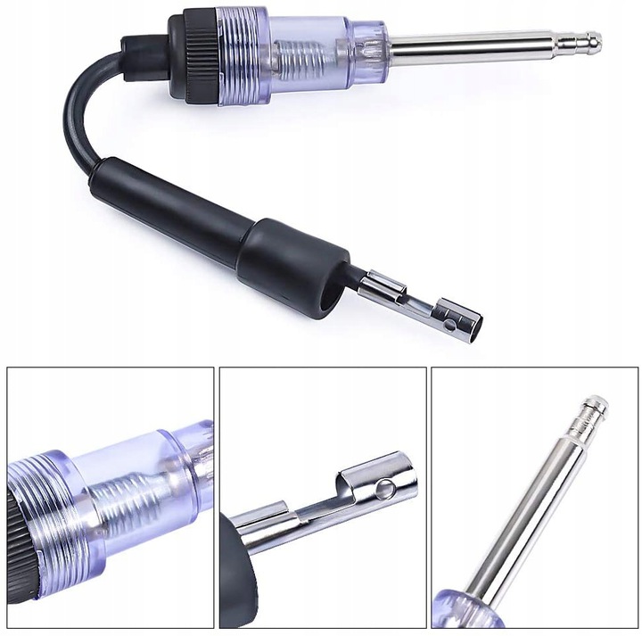 Тестер для проверки системы зажигания. Прибор позволяет легко диагностировать повреждение катушки зажигания и проверить качество и силу искры в свече зажигания. Тестер подключается между высоковольтным кабелем и свечой зажигания.