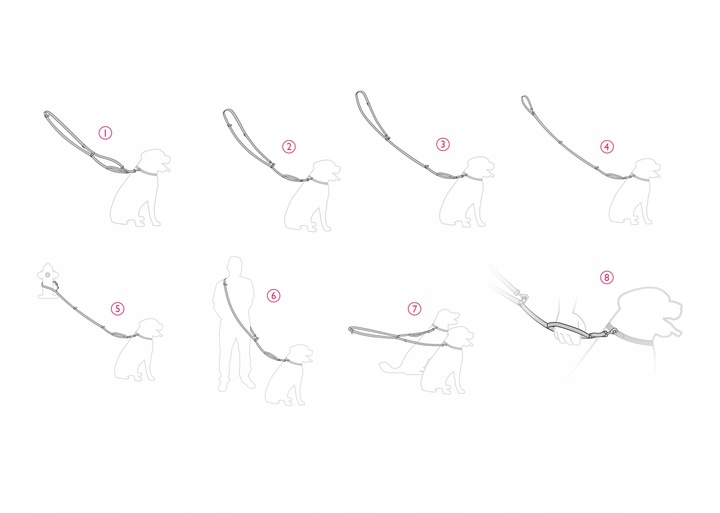 Поводок 8-в-1 предназначен как для прогулок по городу, где собака должна находиться рядом с опекуном, так и для прогулок в парке или лесу, где мы можем дать питомцу >больше свободы .