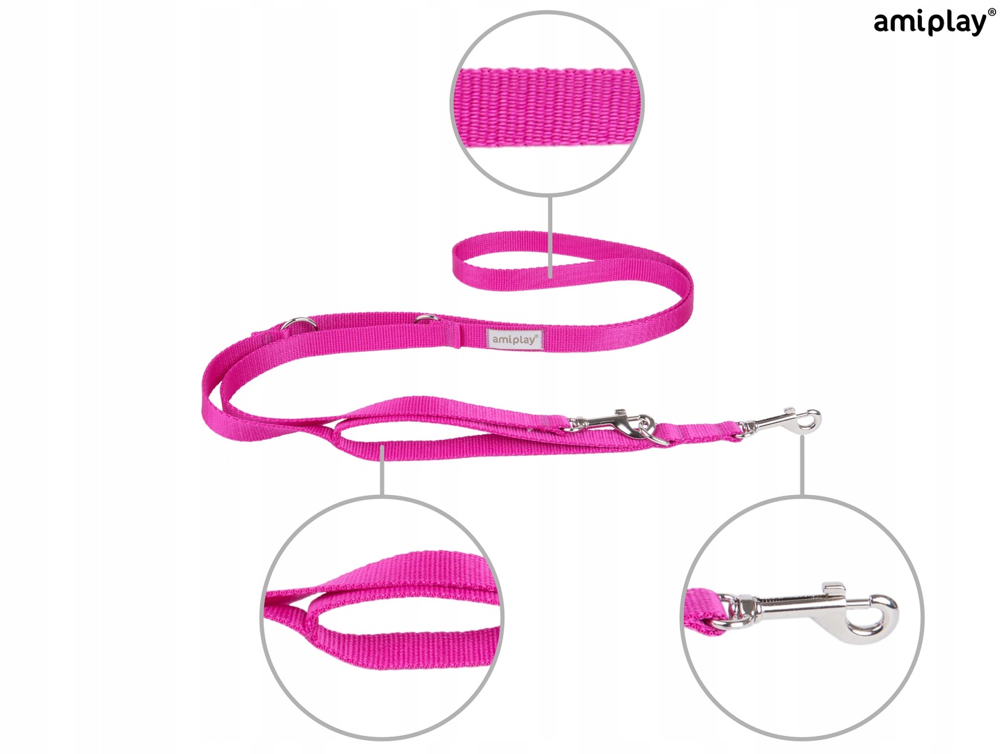 Съемный поводок amiplay 8 в 1 Samba — идеальный выбор для ежедневных прогулок с собакой. Благодаря быстрой смене длины он идеален, если вы хотите обеспечить собаке необходимое количество упражнений, гарантируя при этом ее безопасность и ваш комфорт. Выбирая размер поводка, учитывайте размер и темперамент собаки – чем крупнее и энергичнее собака, тем больший размер следует выбирать. Размеры различаются размером карабина и шириной ремня, как на рисунке выше. При выборе размера также учитывайте размер петельки на воротнике или шлейке. Убедитесь, что слишком большой карабин не беспокоит маленькую собаку.