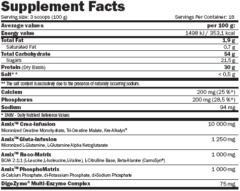 Amix ™ Carbojet ™ Mass. Специально разработанный белково-карбогидратный набор с очень высоким содержанием белка и углеводами. Белковая смесь включает в себя концентрат сывороточного белка и сыворотку, полученную из изолята говяжьего белка. Amix Carbojet Mass Professional содержит низкий гликемический индекс с длительным временем поглощения, высоким качеством мальтодекстрина, глюкозы и фруктозы. Carbojet Mass Professional был специально разработан для тяжести и бодибилдеров, чтобы увеличить их силу и силу. Amix Carbojet Mass Professional идеально подходит для активных людей, ищущих смесь высококачественных белков и сложных углеводов. Калории поступают в основном из сывороточного белка и углевода, эти ингредиенты будут кормить ваши мышцы и помогать дополнить гликоген. Carbojet Mass Professional - это отличный качественный продукт, который поможет вам увеличить качественную мышечную массу, силу, силу и общую физическую подготовку.