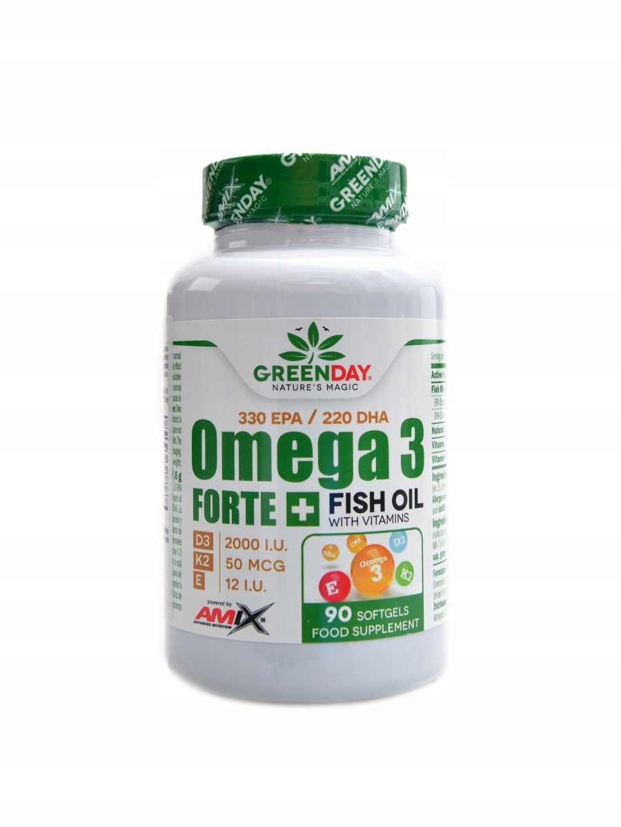 GreenDays® Omega 3 FORTE+ — это пищевая добавка, полная очень полезных для здоровья веществ, таких как жирные кислоты омега-3, известные как DHA и EPA, а также витамины E, D3 и K2, поддерживающие иммунную систему, правильное свертывание крови и защиту клеток от окислительного стресса. Витамин К способствует поддержанию нормального состояния костей, нормальной свертываемости крови, правильной работы сердца и кровеносных сосудов.