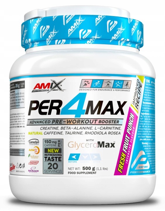 Предтренировочный напиток Per4Max создан специально для обеспечения максимальной выносливости во время интенсивных тренировок. Предварительная тренировка дает вам пресловутый «толчок» перед началом тренировки, делая вашу тренировку более эффективной и увеличивая ваши силы. Он действительно повышает работоспособность и снижает порог утомления.