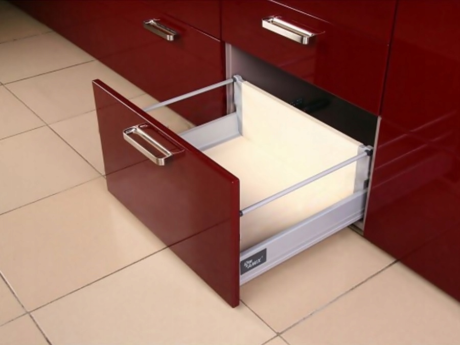 • Две направляющие с функцией затяжки и бесшумного закрывания – высочайшее качество