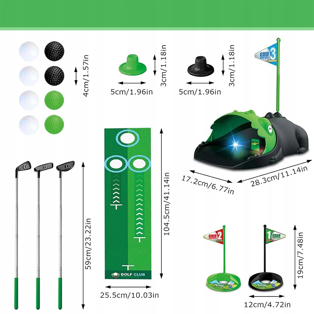 Набор игр для гольфа позволяет мини -гольф -гольфу практиковать и улучшать идеальное убийство. Головы игрушечных палочек имитируют профессиональные палки, чтобы поощрять правильную технику убийства и предоставить детям реалистичный опыт игры в гольф. Каждая палка для малышей имеет регулируемую длину.