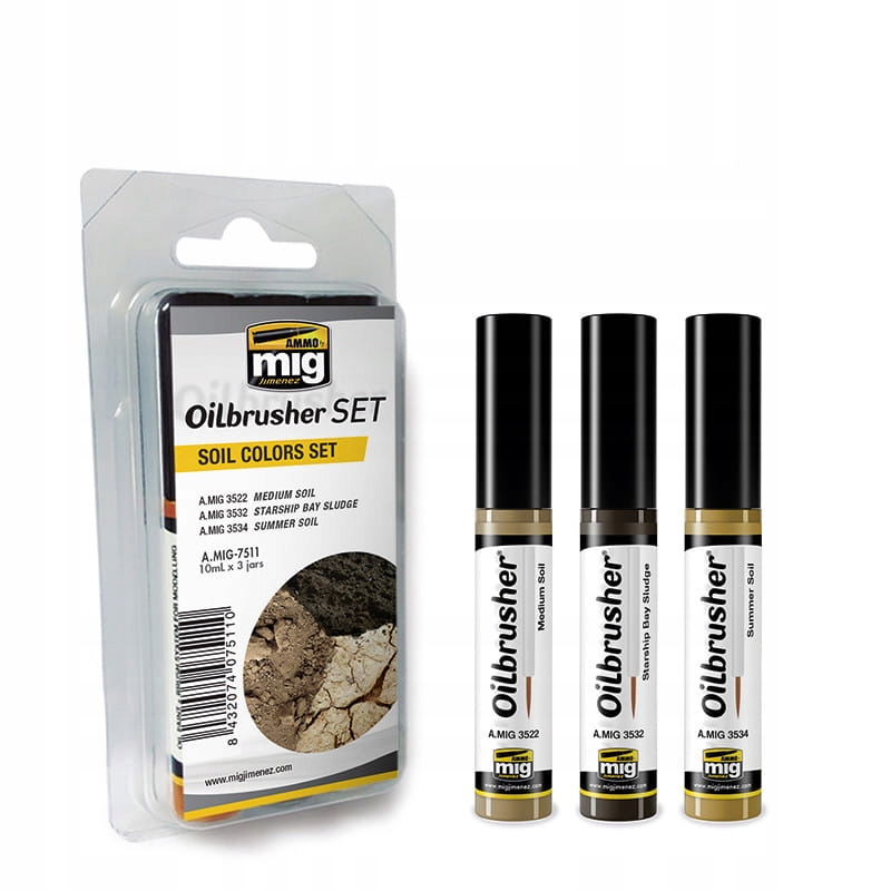 Набор из 3-х масляных красок с кистями. Краски серии Oilbrusher рекомендуются для создания эффектов выветривания и растушевки на моделях и статуэтках. В зависимости от используемого цвета их можно использовать для смывки, грязи и пыли, обесцвечивания, пятен ржавчины, копоти, растушевки лиц фигур, подчеркивания цвета, камуфляжа и т. д. Кисть обеспечивает удобное нанесение, нанесенную краску можно стирать и корректировать, как и в случае с другими нефтепродуктами, используя разбавители, такие как Уайт-спирит и Растворитель без запаха. В комплект входят: средняя почва A.MIG-3522, ил из залива звездолета A.MIG-3532, летняя почва A.MIG-3534. Рекомендуем!