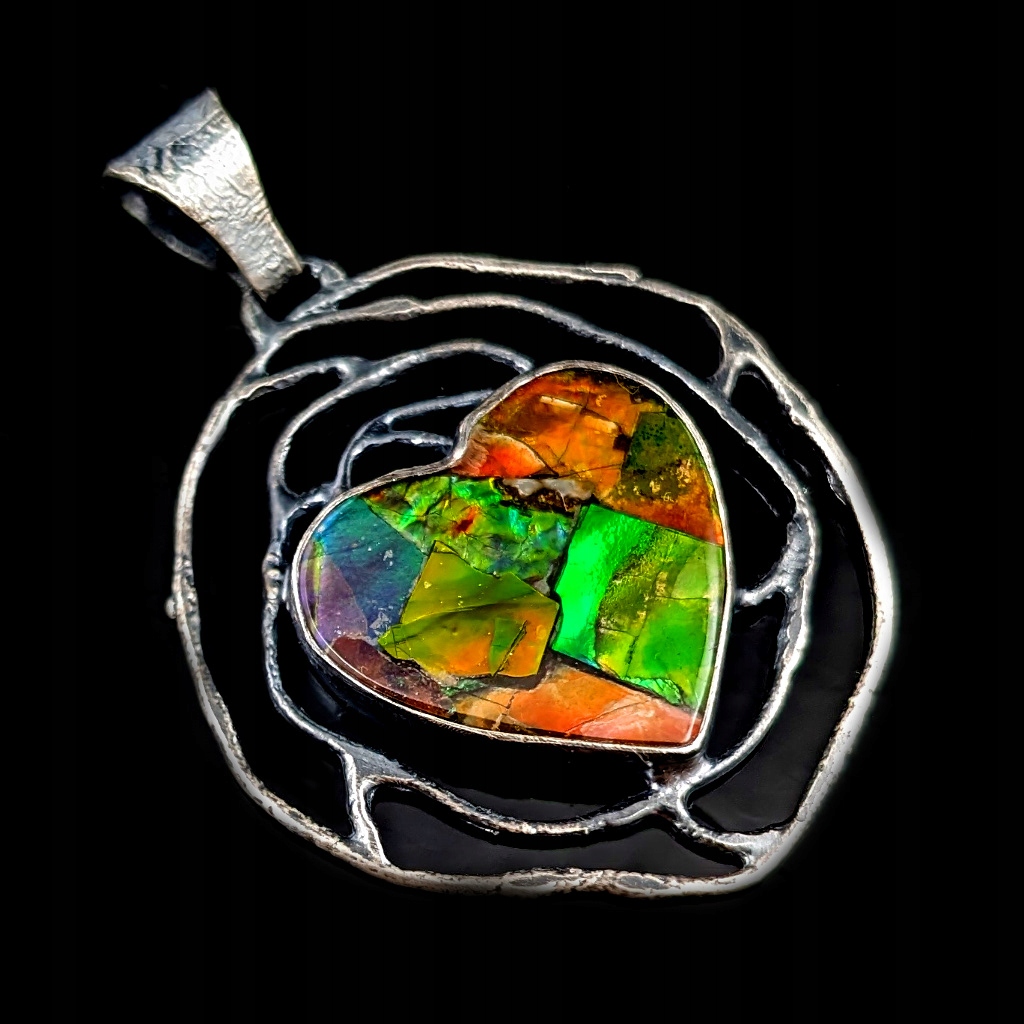 АММОЛІТ СРІБЛО СЕРЦЕ ПІДВІСКА СРІБНИЙ РАЙДУЖНИЙ КУЛОН З АМОЛІТОМ