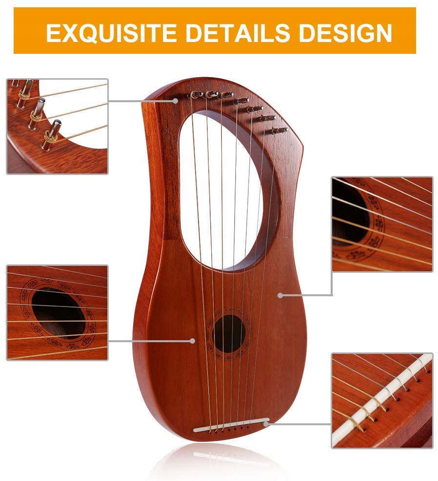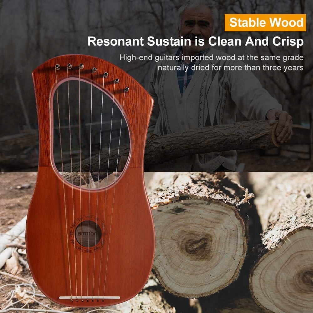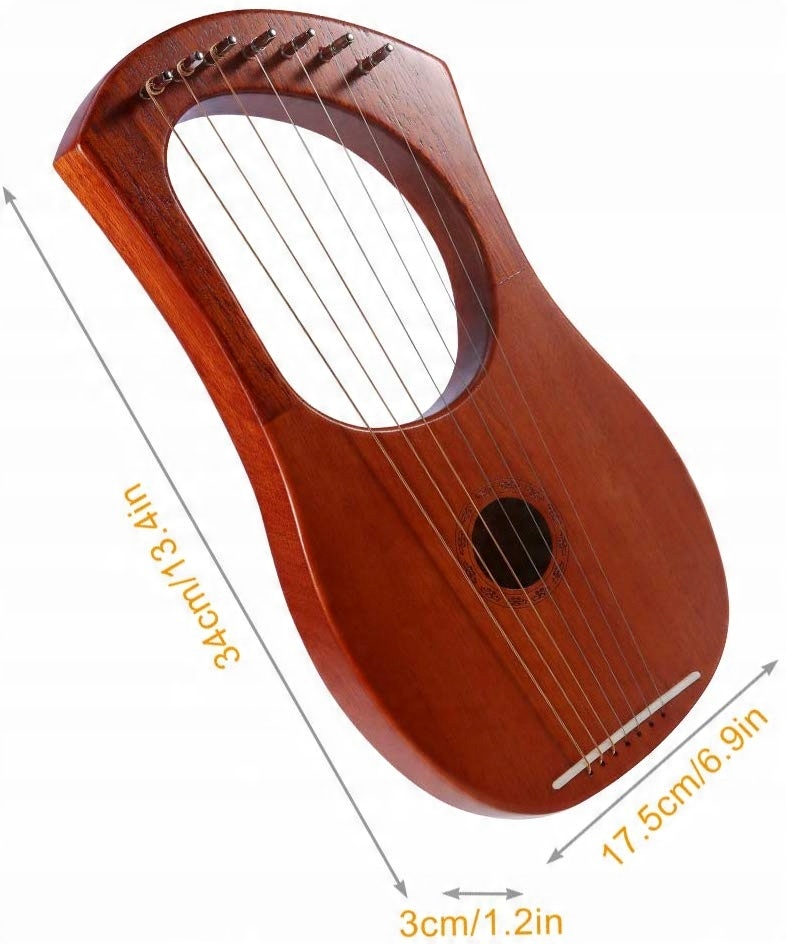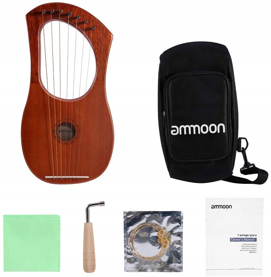 Арфа-лира ammoon, маленькая 7-струнная лира, струны для фортепиано из стальной проволоки, корпус из фанеры из красного дерева, верхняя панель из шпона красного дерева, струнный инструмент с сумкой для переноски.