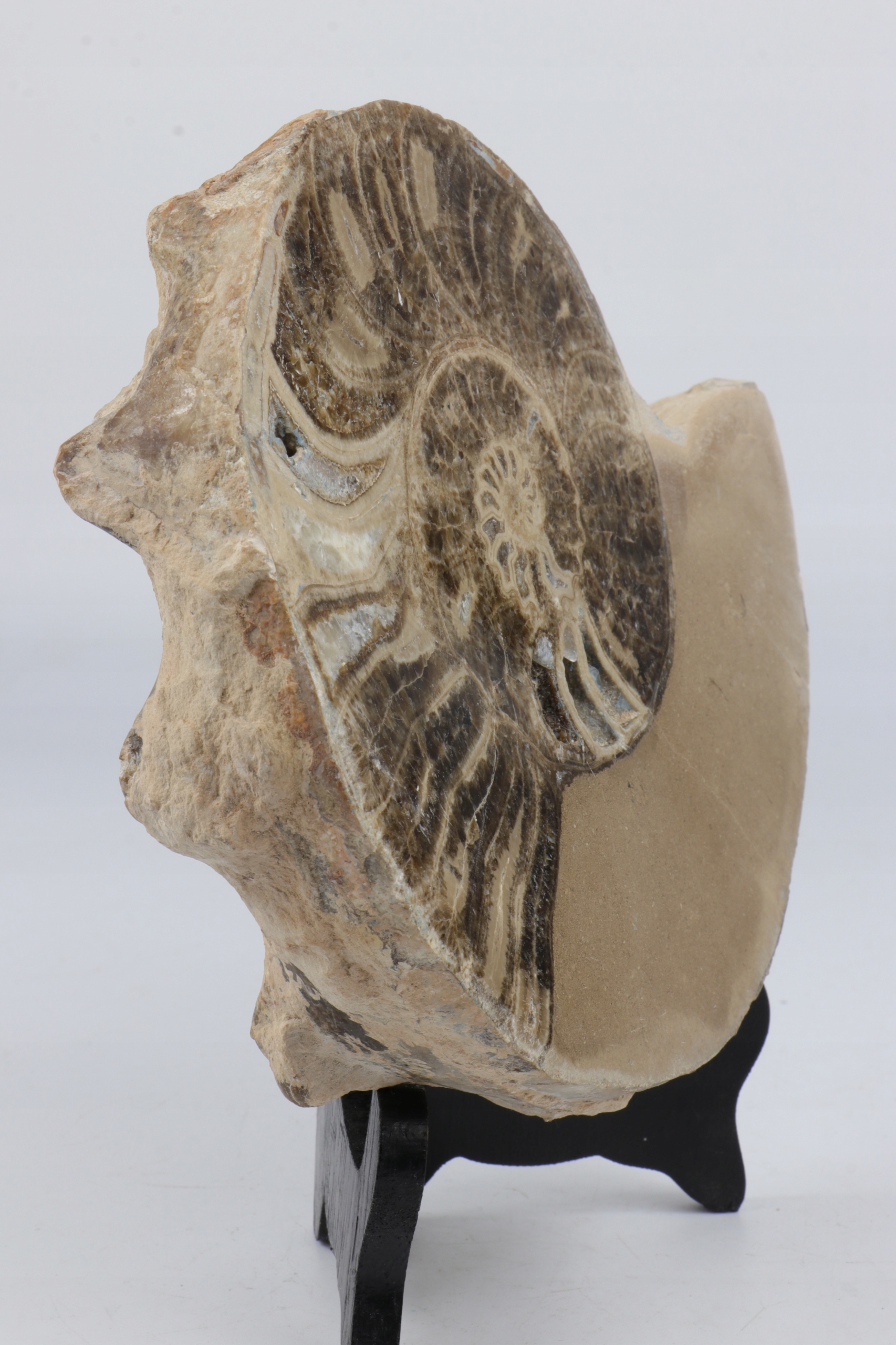 Аммонит, очень крупный, ограненный и полированный с одной стороны.