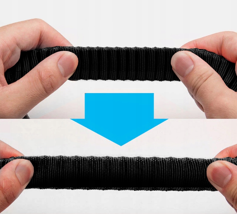 Амортизатор изготовлен из сильной жевательной резинки в плетеной полипропиленовой полосе, что гарантирует длительное использование.