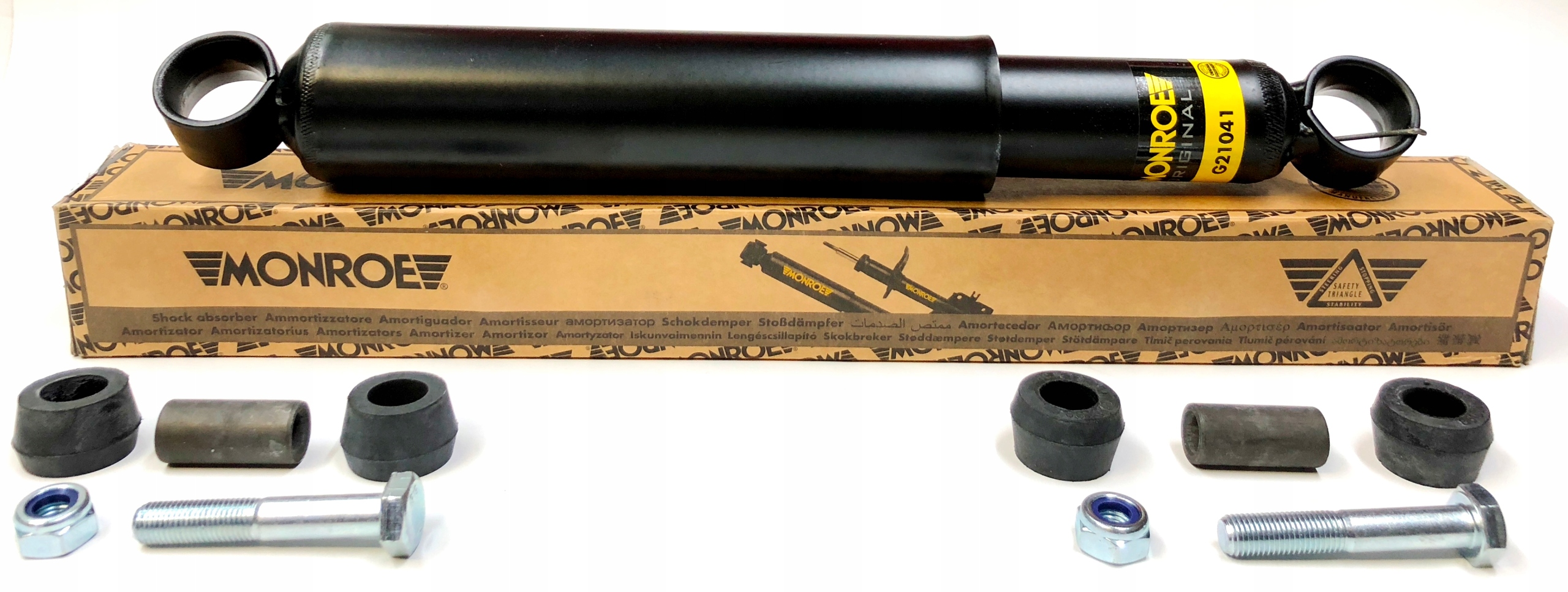 НОВЫЙ ЗАДНИЙ АМОРТИЗАТОР ОТ MONROE + 4 РЕЗИНОВЫЕ ВТУЛКИ + 2 МЕТАЛЛИЧЕСКИЕ ВТУЛКИ + 2 ВИНТА С ГАЙКАМИ ДЛЯ: